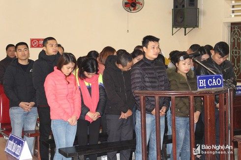 Tòa án nhân dân huyện Quỳ Hợp xét xử 23 bị cáo về tội đánh bạc bằng hình thức ghi lô đề trị giá gần 2,3 tỷ đồng. (Ảnh: Phan Giang) |