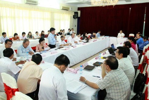 | Các đại biểu QH đoàn Thành phố Hồ Chí Minh tiến hành thảo luận tại tổ. |