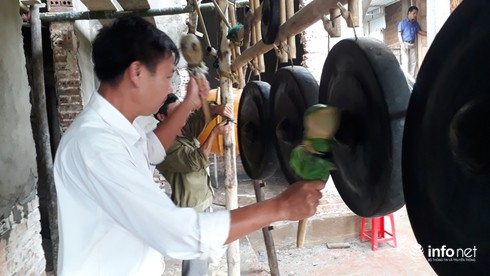Ngay từ trưa, hàng chục người dân đã kéo đến nhà Tiến Dũng cùng nhau đánh cồng chiêng và trống để cổ vũ, tiếp lửa cho Olympic Việt Nam trước trận đấu quan trọng. |