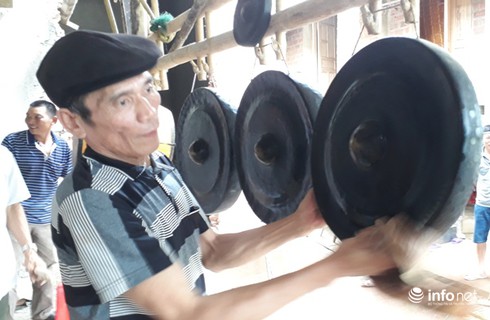 Ngay từ trưa, rất nhiều người dân đã kéo đến nhà Tiến Dũng cùng nhau đánh cồng chiêng, trống để cổ vũ, tiếp lửa cho Olympic Việt Nam trước trận đấu quan trọng.