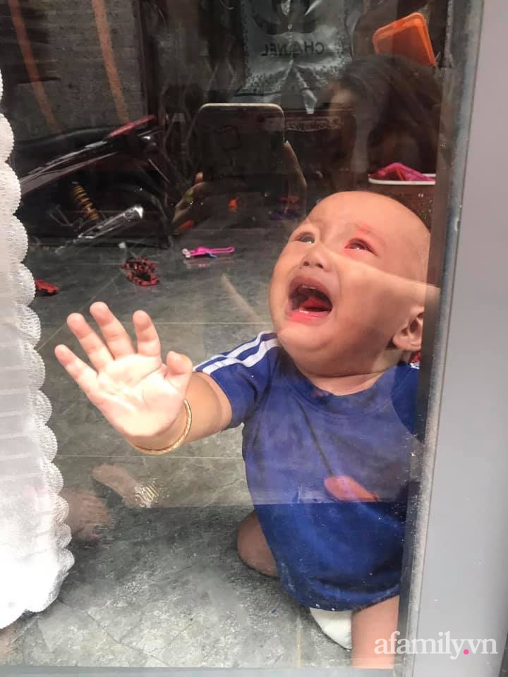 Hai bé Gia Phú và Gia Quý khóc ầm ĩ khi nhìn thấy mẹ ở bên ngoài.