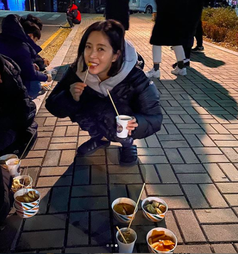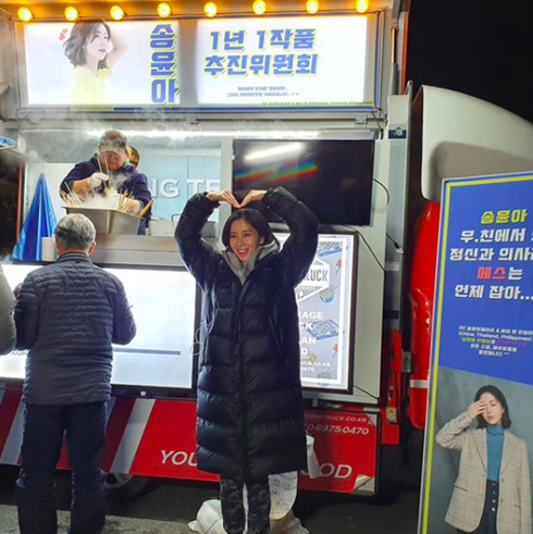 Nữ diễn viên Song Yoon Ah ngồi ăn nhẹ trên phim trường'Bạn bè thanh lịch' |