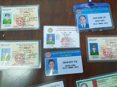 Công an quận 5 đã khám xét khẩn cấp nơi làm việc của Tùng, thu giữ nhiều tang vật có liên quan trong đó có 13 giấy tờ giả và một con dấu có hình quốc huy. Công an xác định nhóm này làm đủ các loại giấy giả như GPLX có ảnh công an, giấy chứng minh nhân dân công an, giấy phép sử dụng thiết bị phát tín hiệu của xe được quyền ưu tiên, thẻ thanh tra, thẻ phí đường bộ toàn quốc…