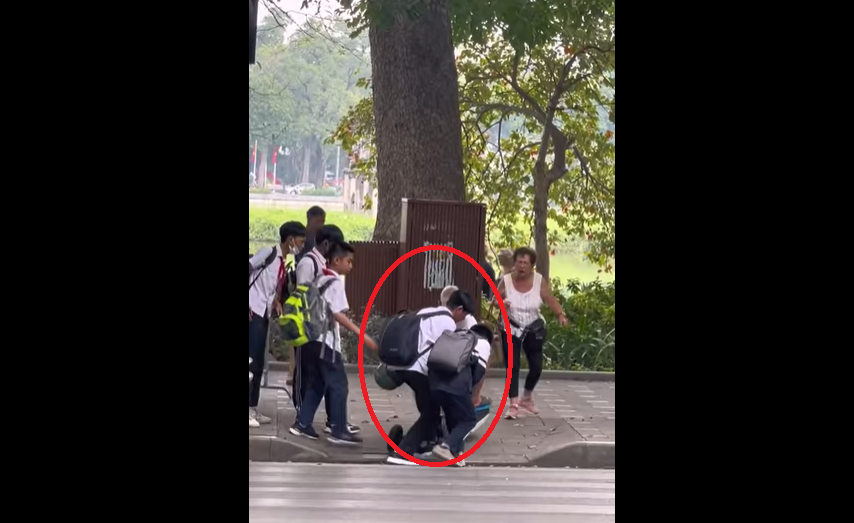 Chia sẻ với phóng viên Infonet, chị Vũ Quỳnh cho biết: “Tình huống trong đoạn clip này diễn ra vào ngày 14/11. Hôm ấy, mình đi bộ ngang qua Hồ Gươm, các bạn nhỏ lúc đó vừa tan học buổi chiều và cụ ông cụ bà trong clip là người nước ngoài. Vì thấy cụ bà loay hoay một mình không thể đẩy xe của ông lên vỉa hè được nên các bạn nhỏ liền vào chung sức. Cụ bà sau đó đã cảm các bạn nhỏ rất nhiều”.
