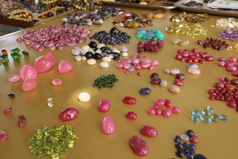 Một bàn bán đá quý tại chợ đá quý Lục Yên. Ảnh: Nguyễn Thảo |