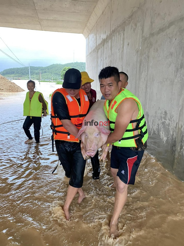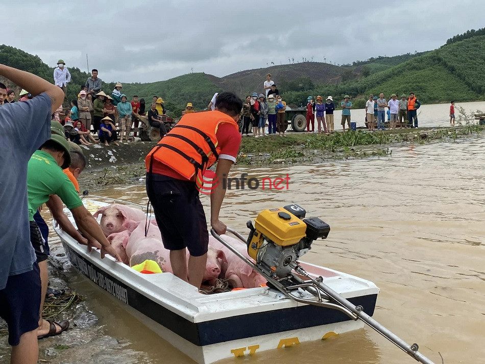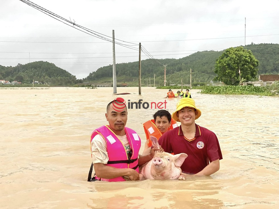 Nhóm thanh niên dầm mình trong nước lũ giải cứu hàng trăm con lợn ở Nghệ An