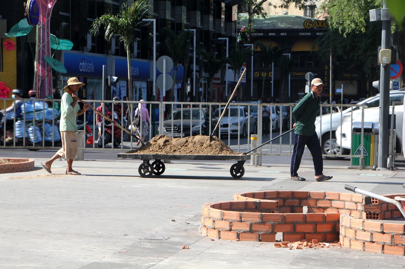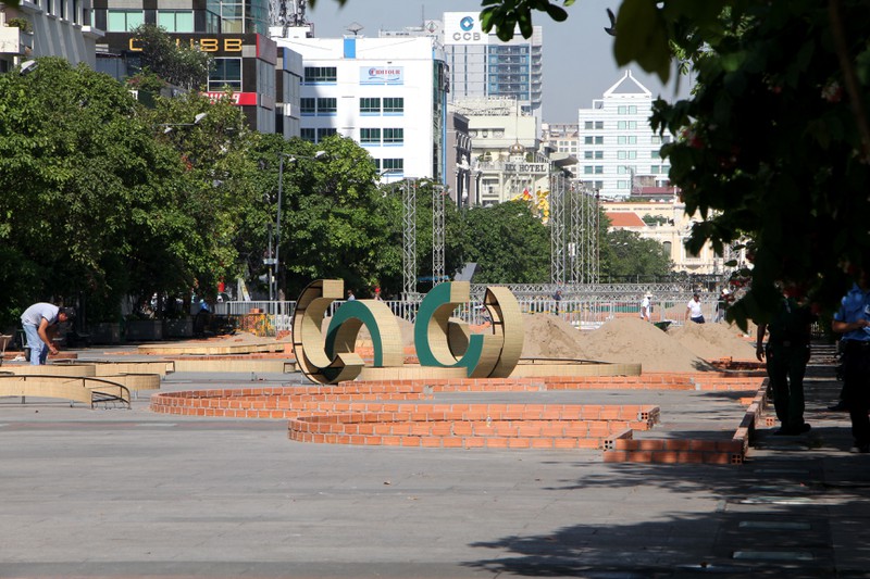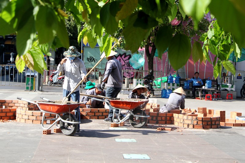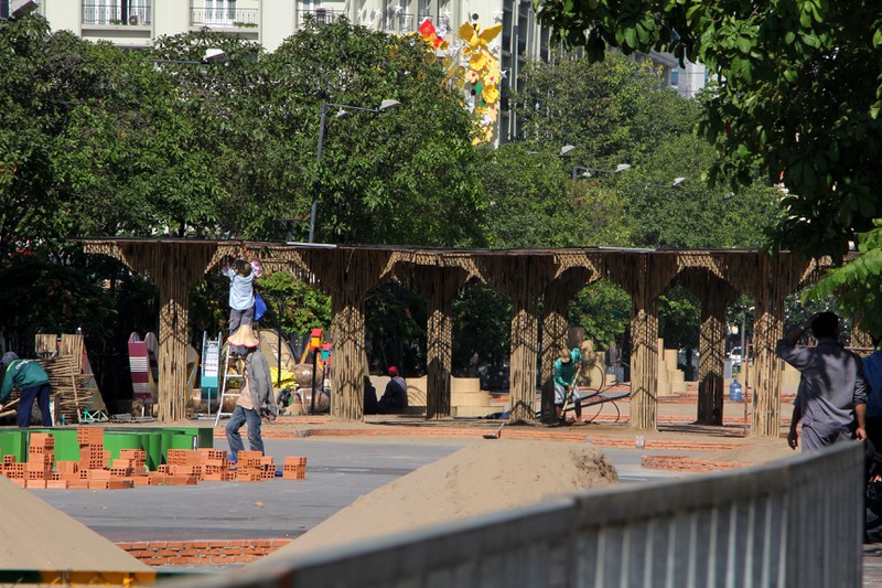 Nhộn nhịp thi công đường hoa Nguyễn Huệ, không thể tổ chức xem Asian cup tại đây