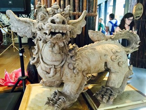 Con nghê - linh vật tượng trưng cho văn hóa Việt Nam đang được trưng bày tại Hội chợ Milan Expo 2015. |