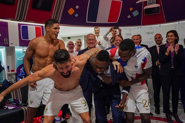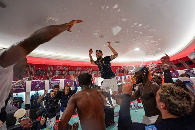 Các cầu thủ Pháp rõ ràng rất vui mừng với thành tích lọt vào trận chung kết ở Qatar khi những hình ảnh về màn ăn mừng tưng bừng bên trong phòng thay đồ từ tối thứ Tư đã xuất hiện.