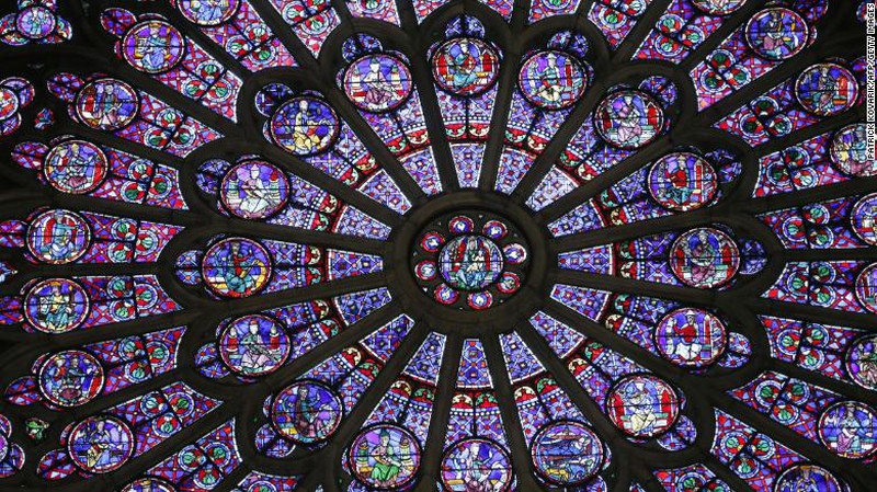 Cửa sổ hoa hồng tại nhà thờ Đức Bà Paris được coi là những cửa sổ bằng tranh kính nổi tiếng nhất, hoàn hảo nhất.