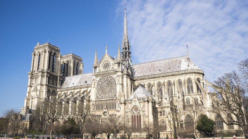 Toàn cảnh nhà thờ Đức bà Paris với ngọn tháp Gothic có tuổi đời hơn 850 năm. |