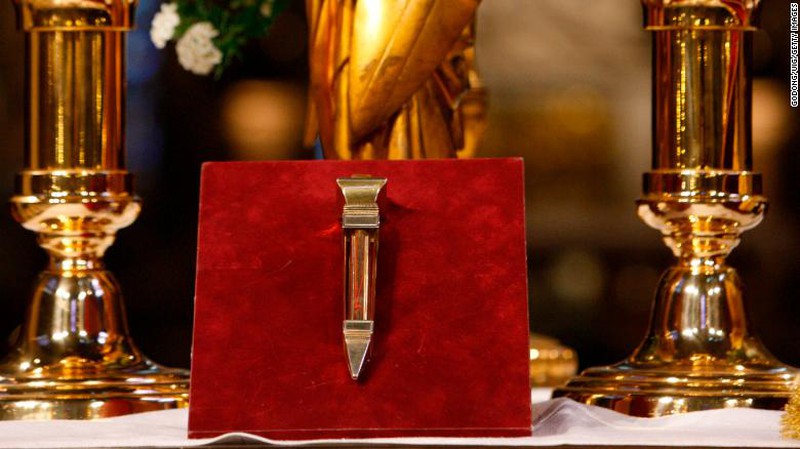 Một chiếc đinh từ thập giá mà Chúa Giêsu Kitô bị đóng đinh được đặt trong nhà thờ Đức Bà. |