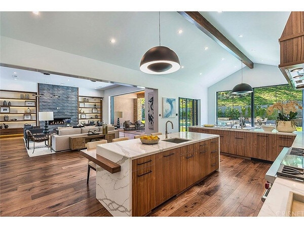 Ngôi sao truyền hình thực tế chỉ sống trong ngôi nhà này được ba năm. Tất cả các ngôi nhà của Kris Jenner đều có nhiều màu trắng, ngôi nhà này có các điểm nhấn bằng gỗ và màu xám nhẹ nhàng. Dinh thự có nhà bếp không gian mở rộng rãi với các thiết bị mới nhất và mặt bàn bằng đá cẩm thạch, dẫn vào phòng khách với ghế sofa màu trung tính và lối trang trí không phô trương. Một phòng ngủ với sàn gỗ nhìn ra khu vườn xanh mát.
