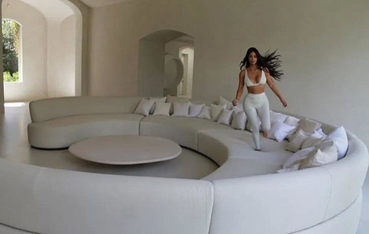 Các hình ảnh cho thấy một chiếc ghế sofa màu trắng có vòng lặp tuyệt đẹp với kích thước không thể tưởng tượng được, cũng như một số món đồ nội thất trông giống như các tác phẩm nghệ thuật. Có lẽ căn phòng duy nhất nổi bật so với phong cách bóng bẩy tổng thể mà không có một chi tiết thừa nào là phòng thay đồ của Kim, trông giống một cửa hàng thời trang hơn.