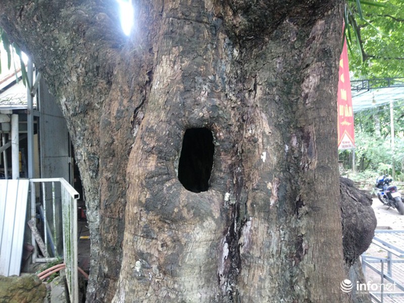 Ở giữa cây thị có một lỗ to sâu vào thân do cây cũng đã khá già. |