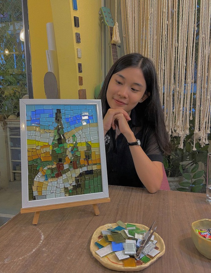 Trải nghiệm làm tranh khảm thu hút nhiều người trẻ.