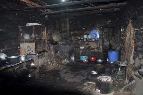 Giống như nhiều gia đình người Tày khác, gian bếp là một trong những nơi sinh hoạt chính của gia đình. Không gian sinh hoạt của đại gia đình từ thời ông nội vẫn được ông Sinh sử dụng, dù gia đình hiện chỉ có 3 người sinh hoạt. Góc bếp là bếp lò to dùng để nấu cám cho gia súc, kế đó là chạn bát, chiếc mâm gỗ chữ nhật, 6-7 ghế gỗ. Tường bếp nhuốm khói đen. Vật hiện đại nhất hiện diện trong bếp có chăng là chiếc bếp và bình ga.