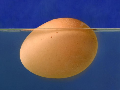 Trứng nổi trên mặt nước:Trứng sống có thể được bảo quản trong tủ lạnh khoảng 3 tuần. Nhưng nếu bạn nghi ngờ về chất lượng của quả trứng, hãy kiểm tra bằng cách thả nó vào cốc nước đầy. Nếu trứng chìm xuống đáy cốc, nó vẫn còn tươi và đảm bảo chất lượng. Nếu quả trứng nổi lên và nằm ngang, nó đã hỏng và bạn không nên ăn. Một quả trứng bị hư sẽ không có mùi thơm kể cả trước và sau khi nấu chín. Ảnh:Fresheggsdaily. |