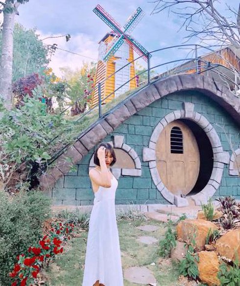 Nhiều bạn trẻ rất thích khi chụp hình bên cối xay gió tại Troh Bư |