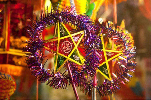 Nhắc đến Trung thu là không thể không nghĩ tới những chiếc đèn ông sao đỏ rực rỡ. Đây được coi là một món đồ chơi truyền thống vẫn còn được bán rộng rãi cho đến ngày nay. Đèn ông sao có hình ngôi sao 5 cánh, bên trong có gắn một cái đinh để cắm nến và thắp sáng. Đèn ông sao lấp lánh ánh sáng trông cực kỳ bắt mắt và chắc hẳn tuổi thơ ai cũng từng cầm chiếc đèn này đi phá cỗ, rước đèn cùng chúng bạn.