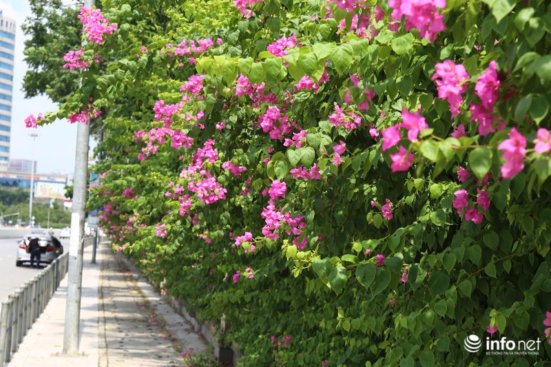 Nét đẹp duyên dáng, dịu dàng của những bông hoa giấy khiến cả đoạn đường Nguyễn Hoàng, Mỹ Đình 2, Từ Liêm được tô điểm sáng bừng. |