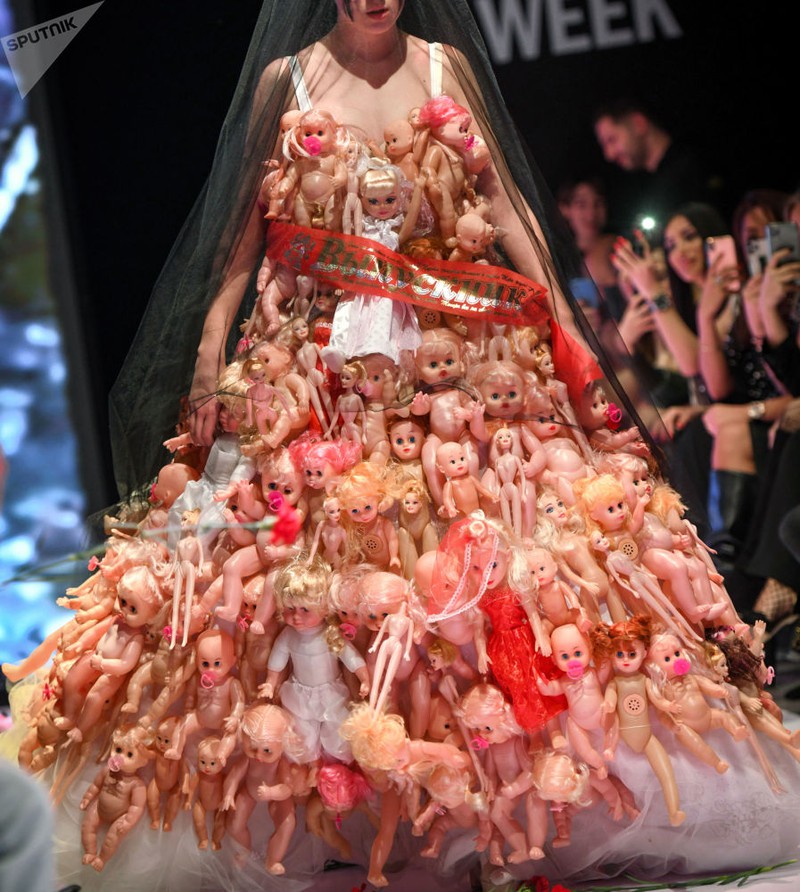 Người mẫu trình diễn một thiết kế vô cùng độc lạ tại tuần lễ thời trang Azerbaijan. |