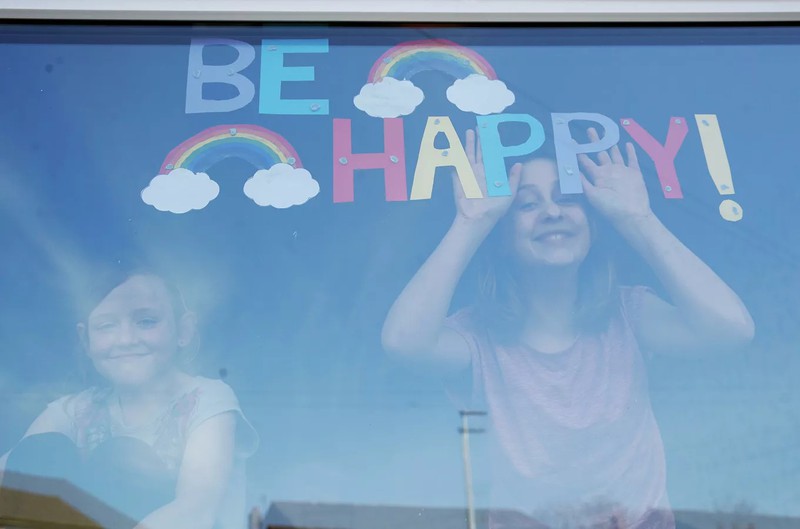 Trẻ em bên cửa sổ bệnh viện St Helens ở Anh. |