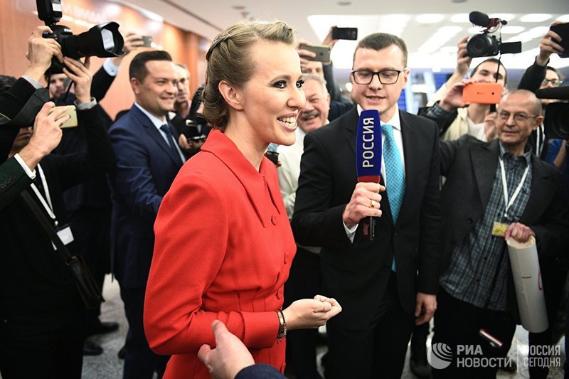 Ksenia Sobchak, người trước đó tuyên bố tranh cử Tổng thống, đã đến sự kiện với tư cách một nhà báo. |