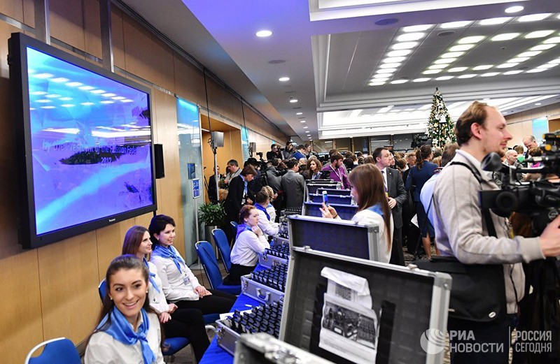 Tổng thống Nga Vladimir Putin tổ chức cuộc họp báo thường niên để tổng kết lại các kết quả công việc của năm qua. Hình ảnh về cuộc họp báo thường niên 2017 của Tổng thống Putin được đăng tải trên Ria Novosti.
