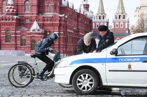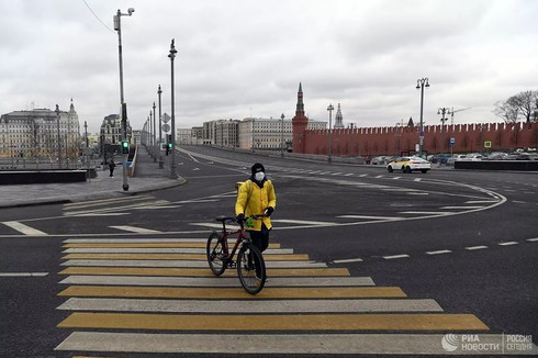 Thực hiện nghiêm túc quy định của chính phủ người dân Nga hạn chế ra đường khi không cần thiết. |