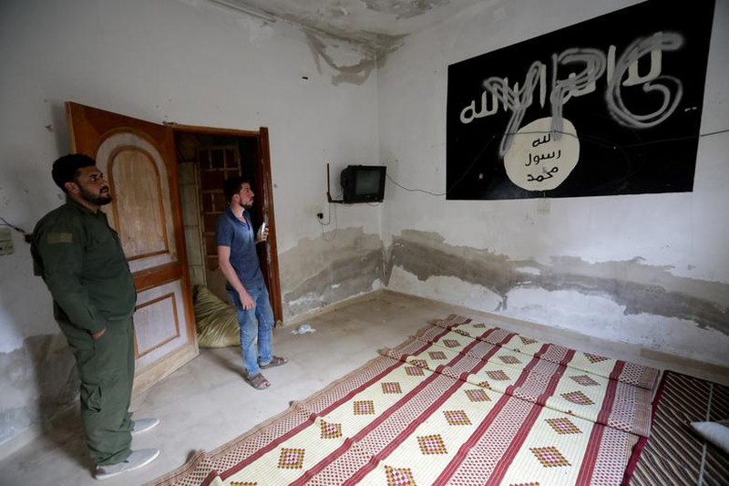 Dấu tích để lại của Đơn vị Bảo vệ Nhân dân người Kurd bên trong một ngôi nhà ở thị trấn Tal Abyad, Syria. |