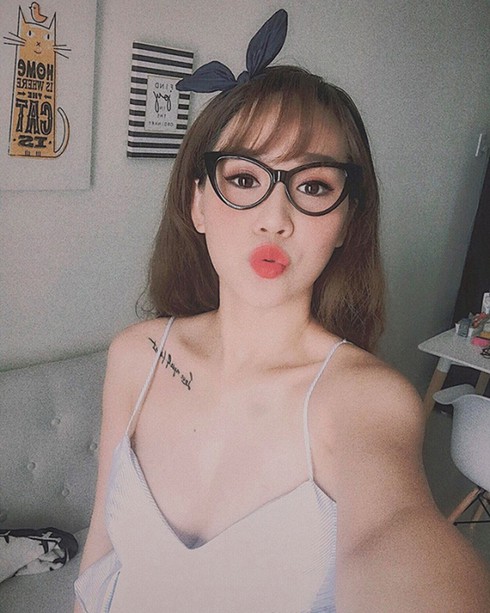Nhưng khi mặc những bộ đồ gợi cảm ở cuộc sống đời thường, cô để lộ hình xăm dài ở dưới xương quai xanh bên phải.