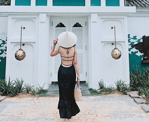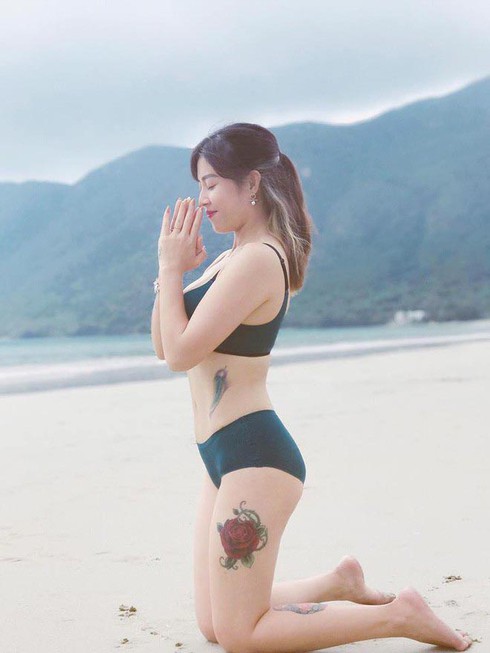 Đằng sau lưng Kim Thảo có hình xăm tên của 2 quý tử.