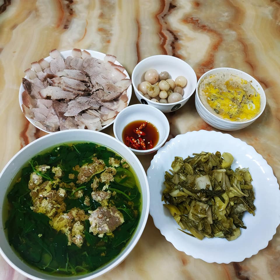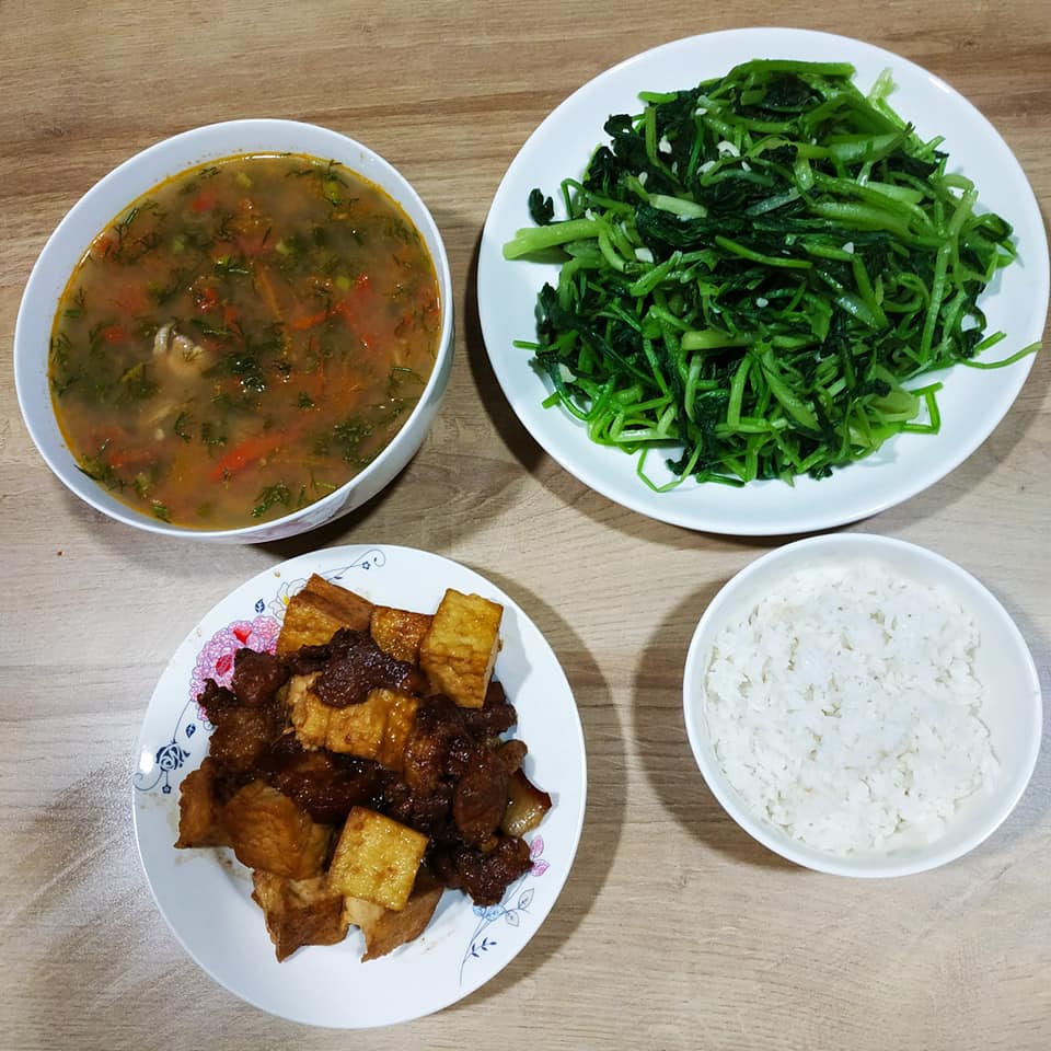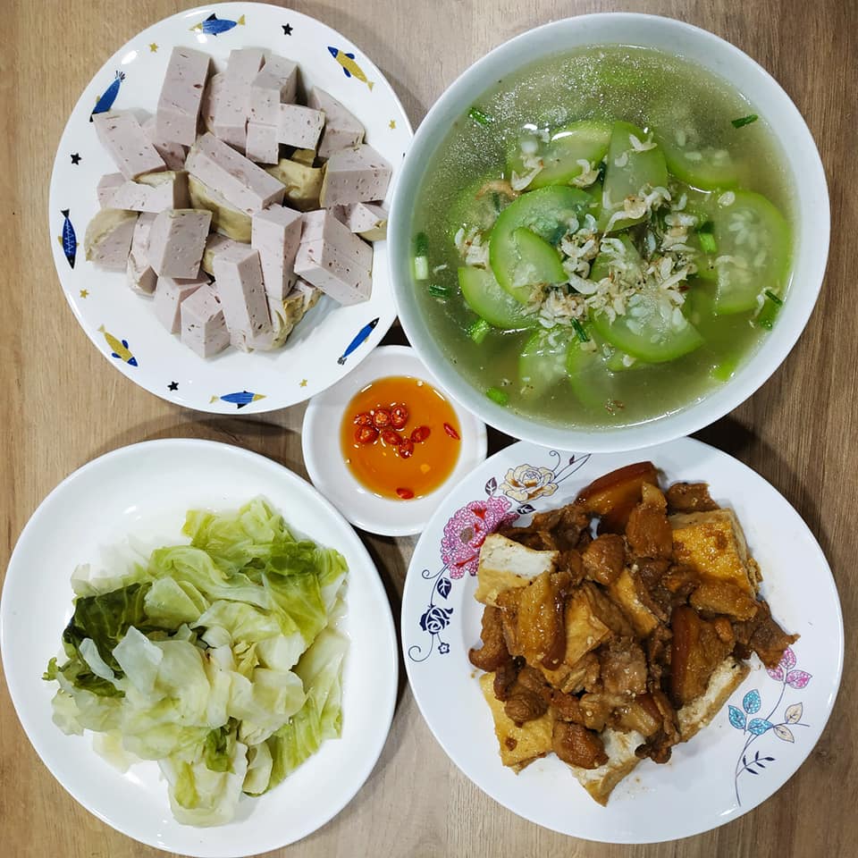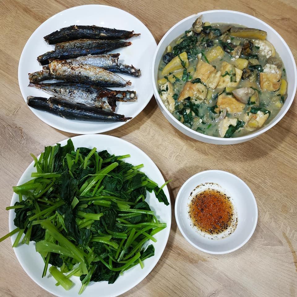 Mâm cơm nào của Lâm Hương cũng rất đơn giản, 3 món quay vòng nhưng luôn ngon và đủ chất.