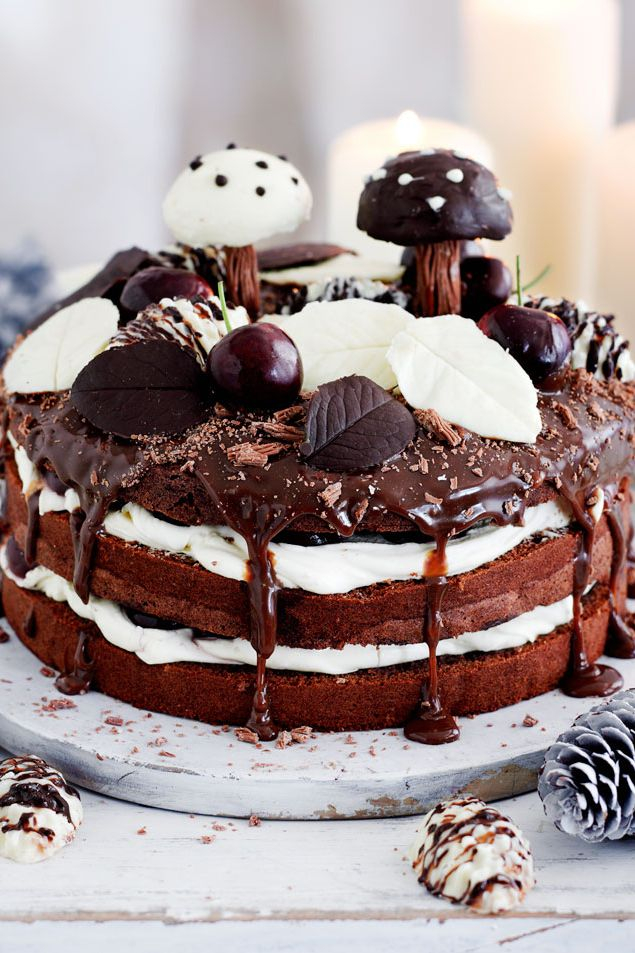 | Nếu không thích lớp kem dày phủ bánh, bạn có thể trang trí bánh Giáng sinh theo mẫu này. |