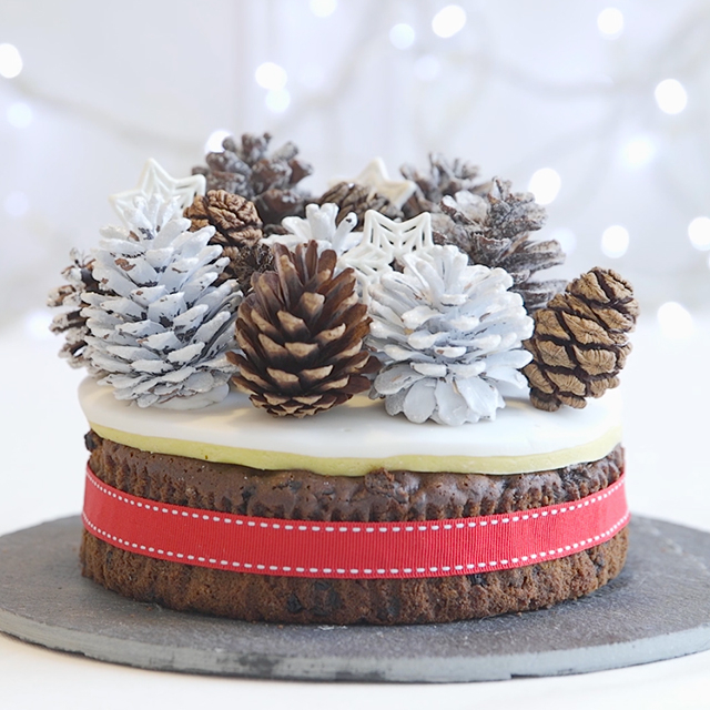 | Chọn tầm 10 quả thông, rửa sạch, phơi khô, xịt sơn 1/2 số trái và bạn đã có chiếc bánh Giáng sinh của riêng mình. |