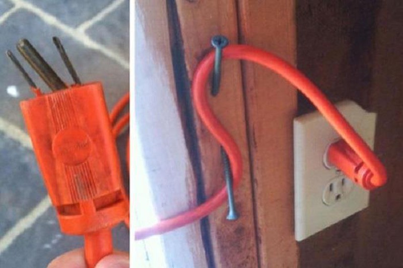 Để dễ dàng kiểm soát các phích cắm điện, bạn có thể cố định dây của chúng bằng những chiếc đinh.