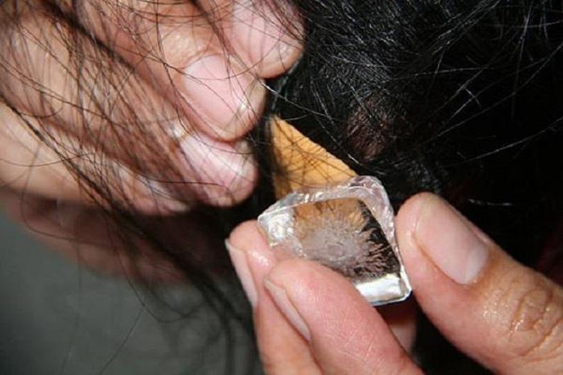 Nếu bạn gặp rắc rối vì hiện tượng bã kẹo cao su dính vào tóc thì hãy mở tủ lạnh lấy ra một viên đá. Dùng đá viên chà lên bã kẹo cao su dính trên tóc. Kẹo cao su bị lạnh sẽ cứng lại và dễ bong ra khỏi tóc.