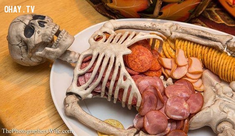 Cả nhà có ai muốn thử nếm các loại thịt hun khói, salami hay chân giò muối trên đĩa này vào tối Hallowen không nào... |