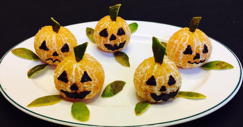 Chỉ cần biến tấu 1 chút thì những quả quýt cũng thành món ăn Halloween lạ mắt. |