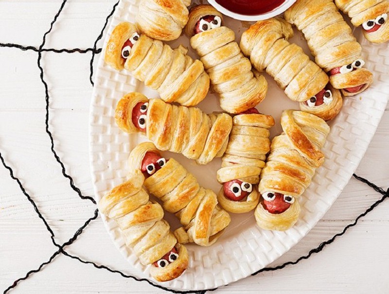 Bánh "xác ướp" tí hon từ xúc xích và pho mai. |