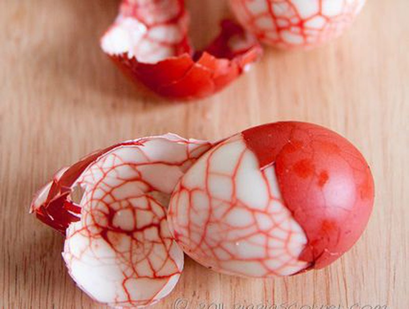 Trứng luộc ngâm nước lá cẩm hoặc củ rền cũng thành khác lạ. |