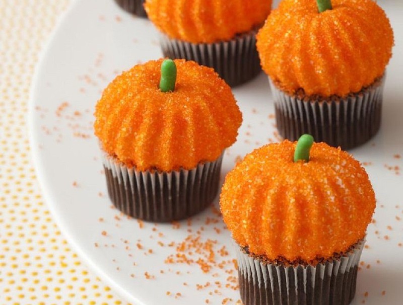 Bánh cupcake với quả bí ngô bắt mắt. |