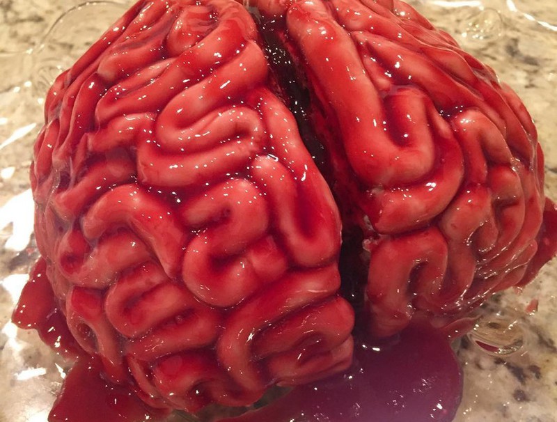 Món bánh " não" từ sữa, dâu tây và thạch làm những người yếu bóng vía lắc đầu. |
