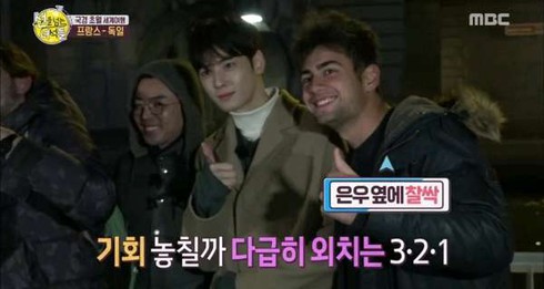 Đẳng cấp nhan sắc của Cha Eunwoo không chỉ khiến phụ nữ ái ngại mà còn “hớp hồn” cả cánh đàn ông. Trong một dịp xuất hiện ở Pháp để tham gia ghi hình chương trình, Cha Eunwoo khiến nhiều chàng trai Pháp phải ngỡ ngàng vì nhan sắc của mình. Thậm chí, các chàng trai châu Âu ấy còn rút điện thoại chụp ảnh Eunwoo và tiến tới bắt chuyện cùng anh. Điều này không chỉ làm Cha Eunwoo hoang mang mà còn khiến các thành viên tổ chương trình phải “dở khóc dở cười”.