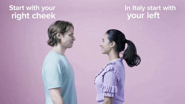 Người Tây Ban Nha nổi tiếng là những người thích náo nhiệt và vô cùng thân thiện. Nếu đến thăm Tây Ban Nha và có cơ hội gặp gỡ một cô gái, đừng quá ngạc nhiên và suy nghĩ nhiều khi trong lúc giới thiệu bản thân, cô ấy hôn bạn đến hai lần – mỗi lần vào một bên má bởi vì đơn giản đây chỉ là một hình thức nói "Xin chào" theo văn hóa của người Tây Ban Nha.
