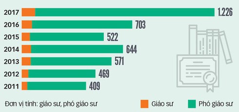 Việt Nam, sau lần công nhận chức danh giáo sư năm nay, đã có hơn 12.000 giáo sư và phó giáo sư. Đó là một con số khá lớn so với nước láng giềng. Ở Thái Lan, số liệu năm 2015 cho thấy cả nước có 6.343 phó giáo sư và 754 giáo sư.