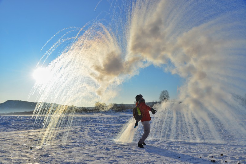 Nhiệt độ -20 độ C, đứng giữa lòng sông tung nước sôi thành tuyết. |