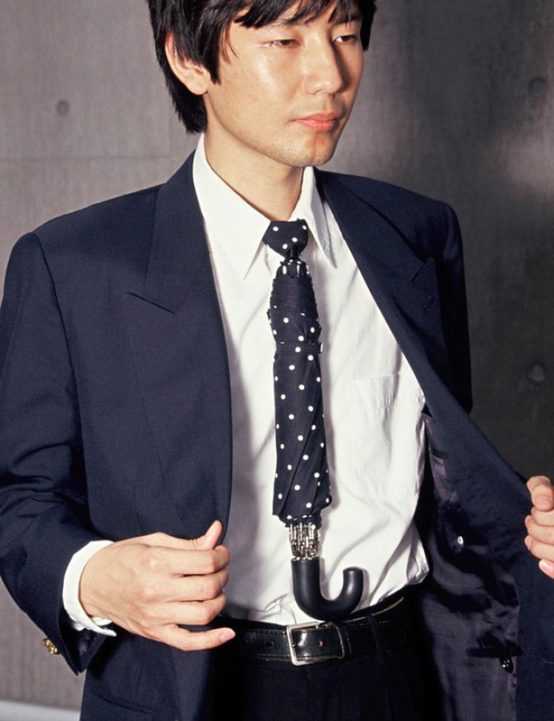 Cà vạt ô. Với chiếc cà vạt kèm ô này, bạn khỏi lo trời đột nhiên đổ mưa. |