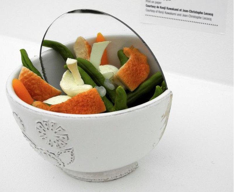 Bát ăn kiêng. Chiếc bát này thực ra chỉ như một chiếc bát bị vỡ một nửa. phần bị vỡ được gắn bởi một mảnh gương. Thức ăn phản chiếu qua gương khiến bạn cảm thấy như đang ăn gấp hai lần thức ăn đựng trong bát đó. |